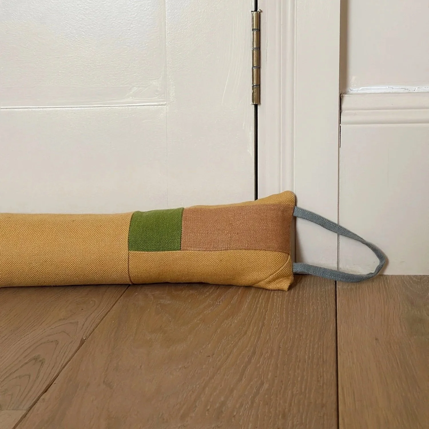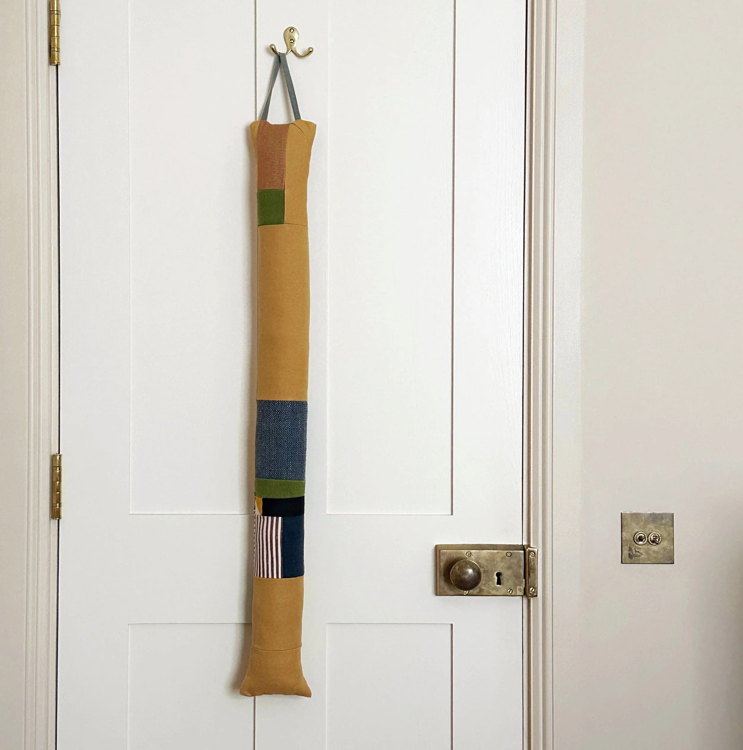 A handmade patchwork draught excluder created using various fabric off cuts. It can also be used to keep that tricky light out from under the bedroom door.